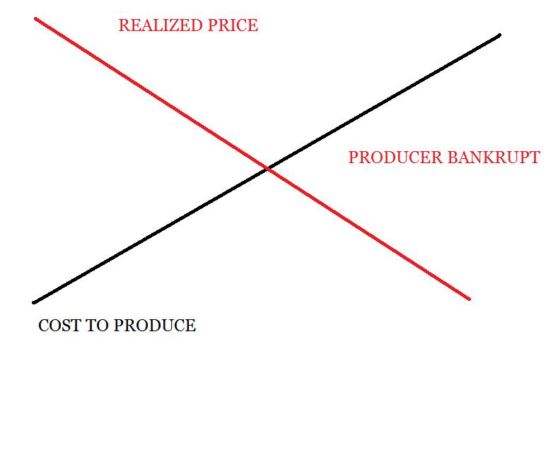 3. Continue doing this until the producers can no longer make a profit and production begins to fall (nearly complete).