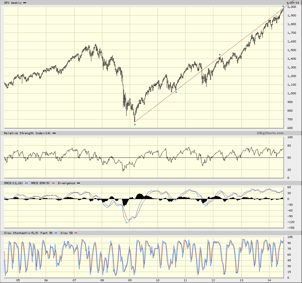 Still watching the area around July 8. Could be something significant will happen then. Perhaps it could be an all time high with the S&P touching 2000. Or maybe the big high happened today when the Dow touched 17000, which has been talked about for a long time, and there will be a negative event over the holiday which sends the market down around July 8. You got me. I have no idea why we're here to begin with. Still 15% short.